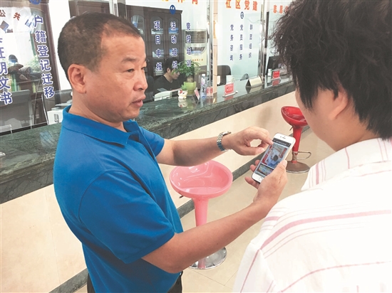 吴章建为居民讲解如何运用社区公众微信号快速办理相关事项