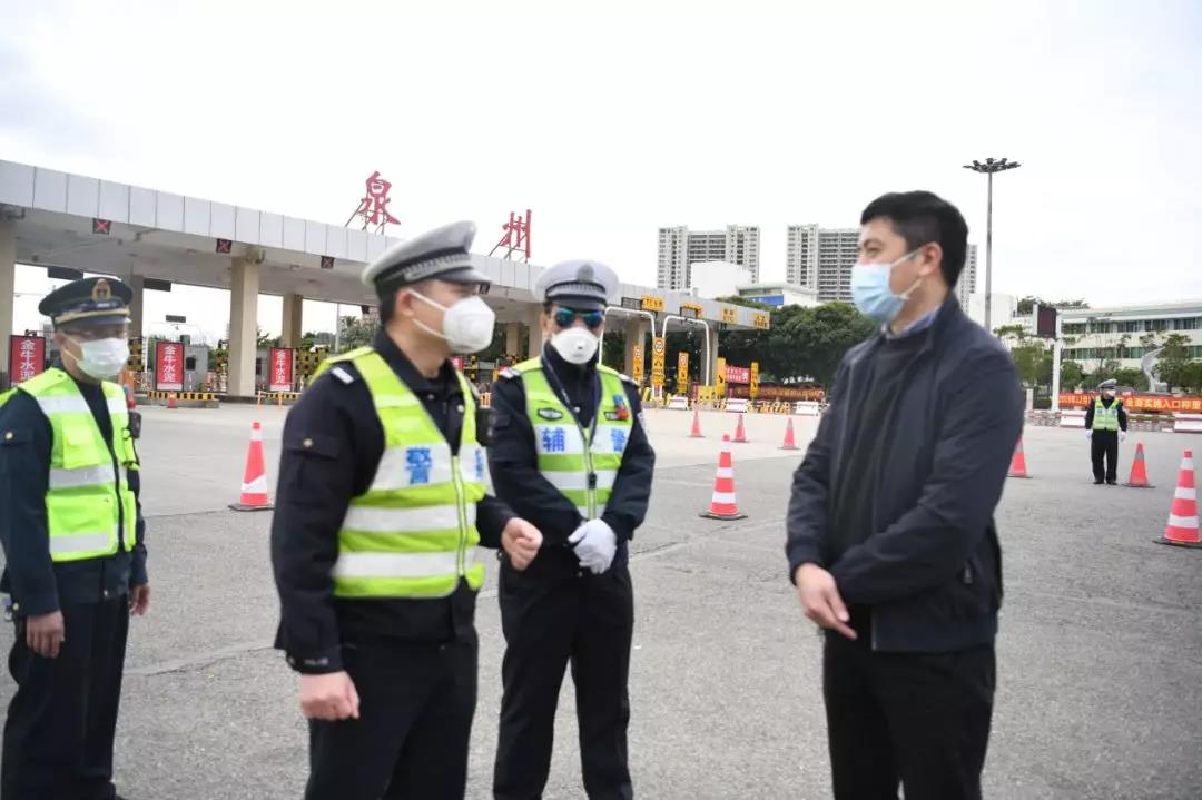 图为区委常委、区纪委书记、区监委主任林添盛到高速出口了解疫情防控工作落实情况。