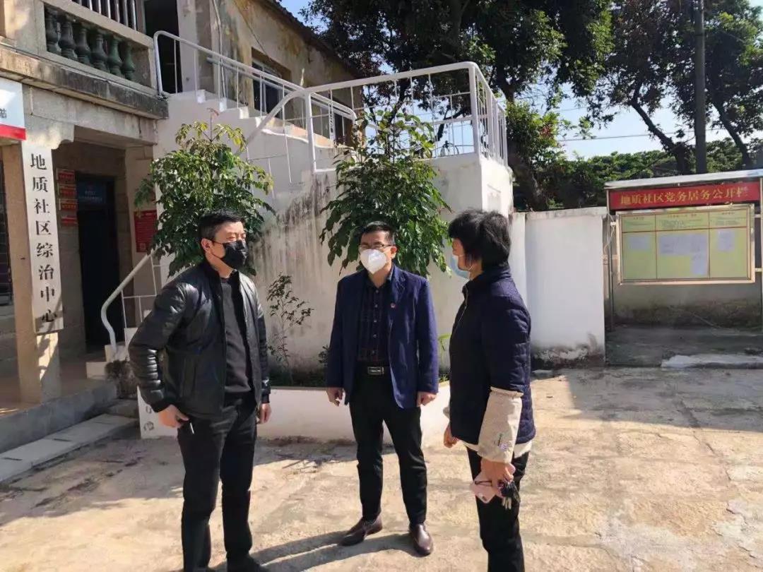 图为区委常委、区纪委书记、区监委主任林添盛检查指导地质社区疫情防控工作。