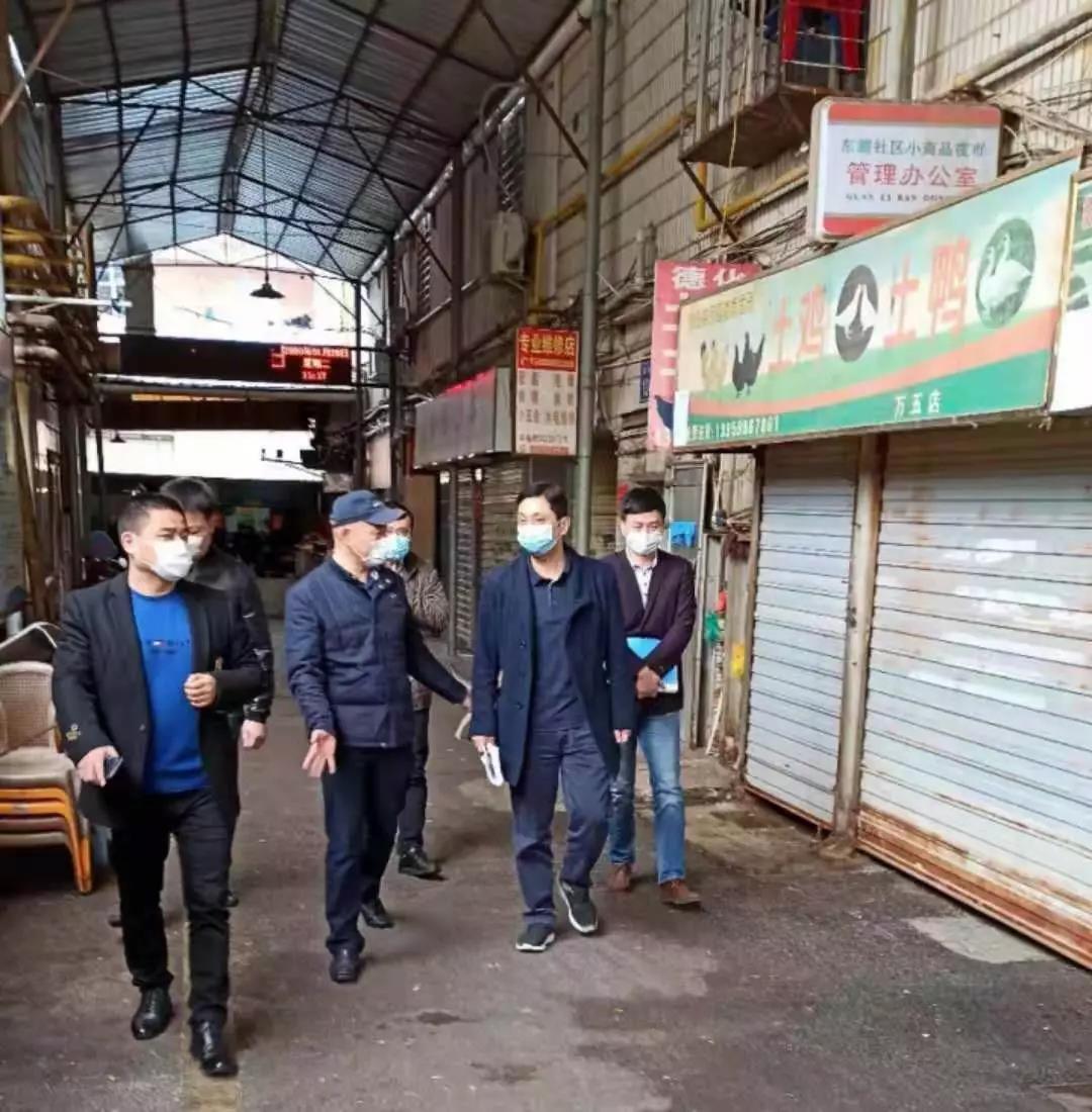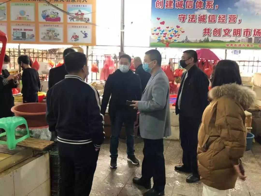 图为泉秀街道纪检监察干部深入农贸市场,检查防控工作落实情况。