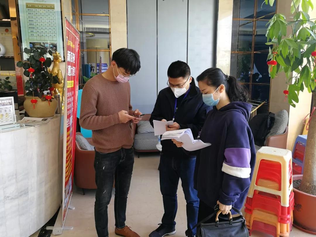 图为华大街道纪检监察干部暗访辖区酒店,现场询问街道网格人员宣传情况及酒店疫情防控措施。