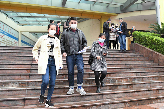 图为:考试结束后,纪检监察干部们轻松走出考场