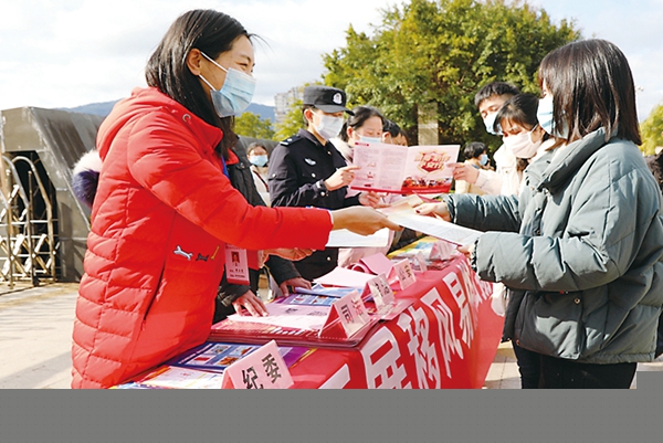 福建省纪检监察机关开展清风行动,对婚嫁陋习、天价彩礼等不良社会风气进行治理。图为该省建瓯市纪检监察干部会同有关部门开展移风易俗宣传活动。(建瓯市纪委监委供图)