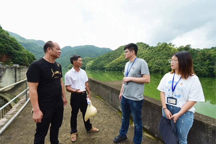 永泰县纪检监察干部在梧桐镇后溪村走访了解水源地保护有关情况。