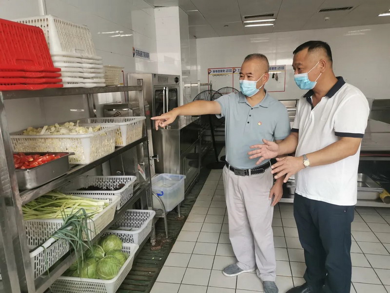 泉州市纪委监委驻市政府办纪检监察组干部对市行政中心机关食堂疫情防控、食材采购等情况进行检查。(潘菁菁 摄)