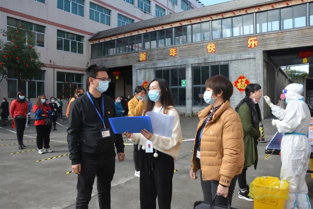 安溪县纪检监察干部到企业督查对返岗工人疫情防控工作落实情况。