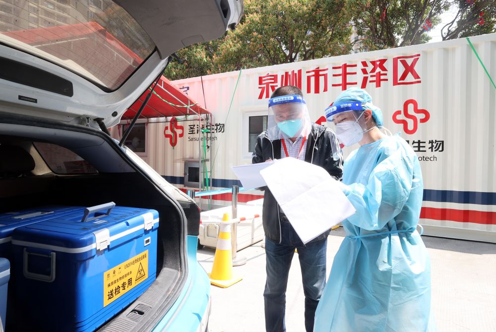 丰泽区纪委监委督导组干部走访了解核酸检测采样工作“中梗阻”问题。(泉州市纪委监委供图)