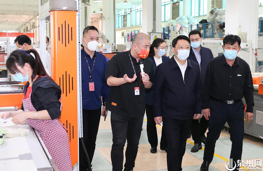 企业是产业发展的“生力军”。一批长年深耕纺织鞋服、机械装备、纸业印刷、新材料等领域的泉州企业,在疫情期间克服影响,保持生产经营不断线。刘建洋深入厂房车间,详细了解企业闭环管理、供应链环节、市场订单、用工缺口等情况,叮嘱企业在做好疫情防控前提下,开足马力达产满产。针对企业普遍反映的物资运输困难,要求相关部门加强协调服务,倒逼问题解决,通过设置中转站、实行跨域闭环转运等方式,打通物流堵点,确保原料“进得来”、产品“出得去”。