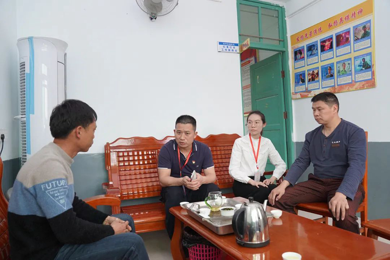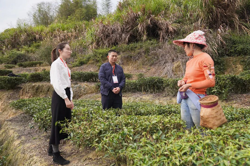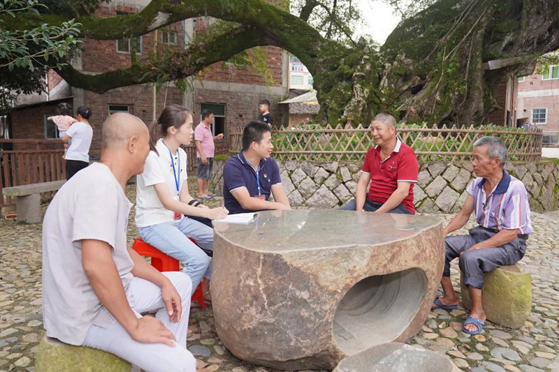 谢杰峰(左二)向湖岭村的村干部了解情况