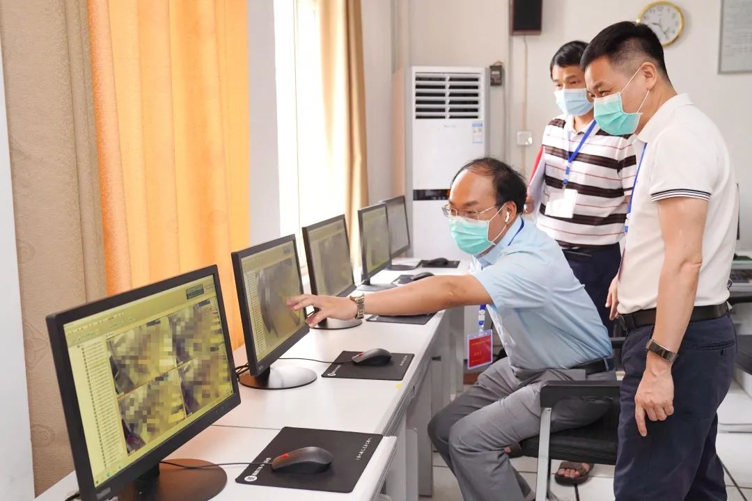 泉州市纪委监委驻市教育局纪检监察组干部深入南安鹏峰中学考点,实地检查疫情防控、安全保卫、电子探测、考点视频监控等工作落实情况,督促责任部门认真履职尽责,确保顺利实现平安高考、健康高考、暖心高考。(蔡新祝摄)