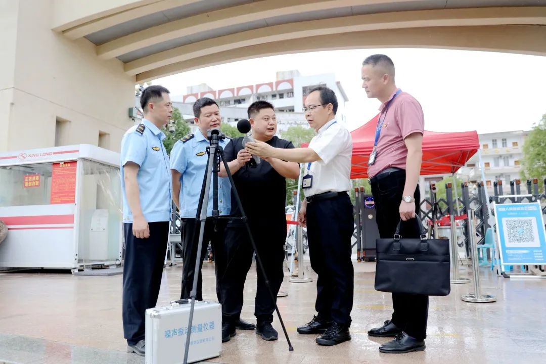 南安市纪委监委驻市自然资源局纪检监察组干部到南安一中考点周边了解噪音监测有关情况。(黄文彪 摄)