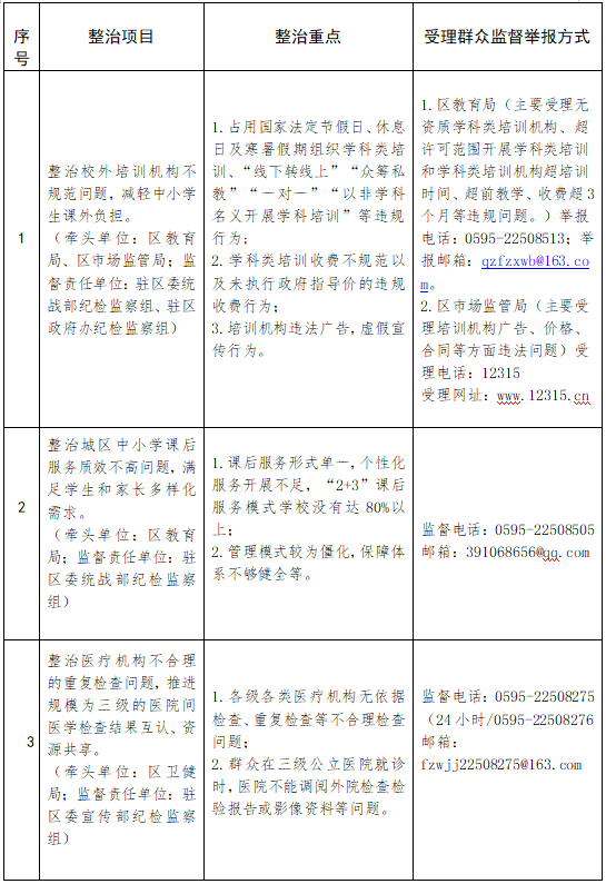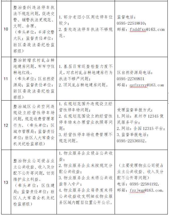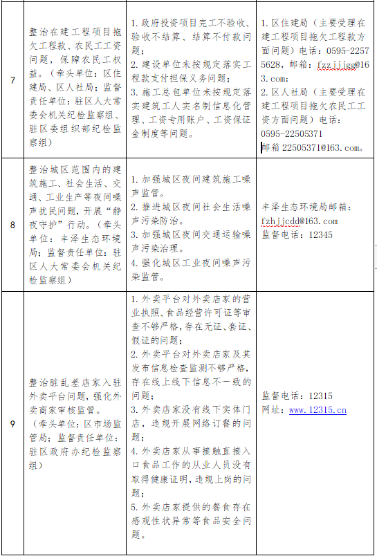为方便群众参与监督和反映问题,现将丰泽区16项“点题整治”项目、整治重点及监督方式公布如下: