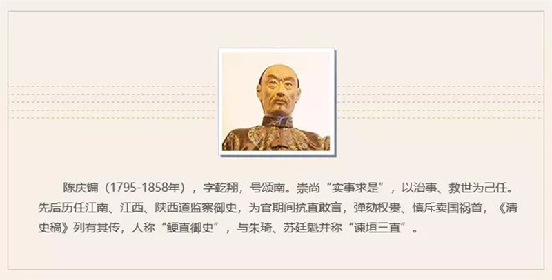 1842年,《中英南京条约》签订,举国震怒。硝烟还未散尽时,所谓“罪臣”们却又被官复原职。一时间群臣噤若寒蝉、缄口莫敢言。1844年,时任江南道监察御史的陈庆镛,毅然奏疏直谏皇帝,极力弹劾琦善、奕经、奕山等在鸦片战争中丧权辱国的罪人,直言“刑赏失措无以服民”,请求“收还成命”,以使“国法稍伸,民心可慰”。这道奏疏有理有据,大胆耿直,措辞严厉,宛如惊雷落地。最终琦善等人“均著革职”。一道奏疏,言人之不敢言,一下子绊倒3个卖国奸臣,其作用令人咋舌。陈庆镛也从此“直声震天下”,世人“皆望其风采”。
