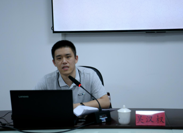 图为市纪委监委信访室四级主任科员吴汉权讲授《基层信访问题的分类梳理及处置办法》