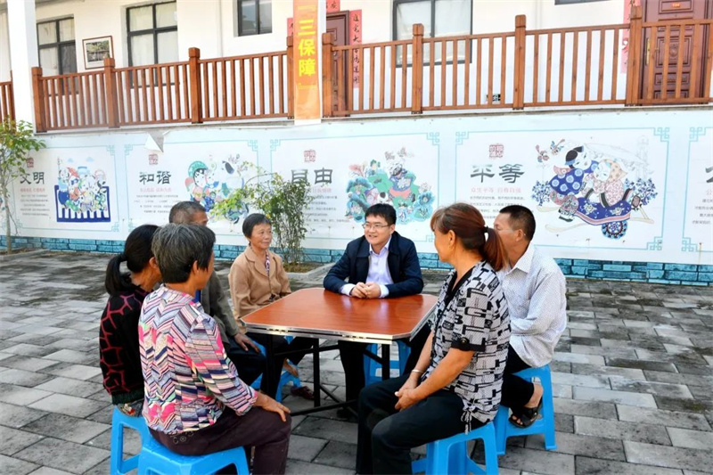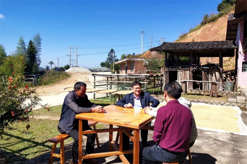 黄家发(右三)到大田县华兴镇异地搬迁“福平堡”内了解群众“急难愁盼”问题。
