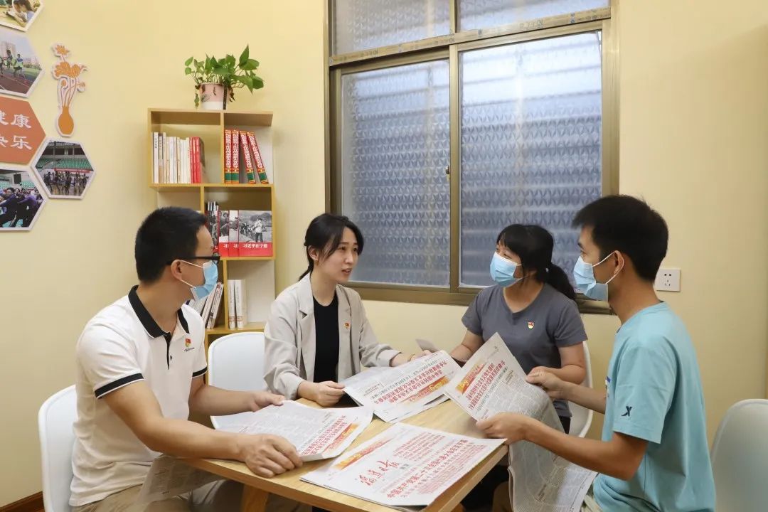 永春县纪委监委机关党员干部分组讨论党的二十大报告。(陈跃虹 摄)