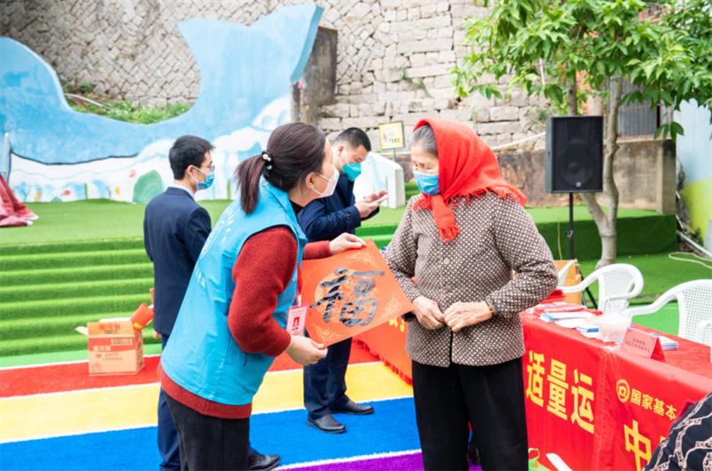 丰泽区委常委、区纪委书记、区监委主任宋占锋为群众挑选春联