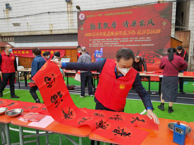 春节前夕,为营造文明祥和清廉的节日氛围,弘扬优良家风,持续深化“三级联创”活动,泉州市纪委监委机关党委、丰泽区纪委监委和法石社区党委联合举办“翰墨飘香·清廉家风”送春联活动,邀请纪检监察干部和丰泽区书法家共同写春联、送春联,将廉洁清风和新春祝福送到广大群众中。