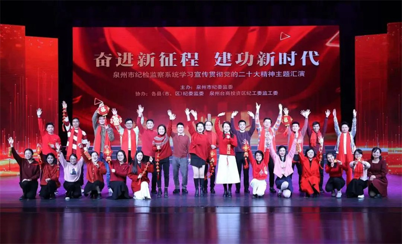 2月5日,由泉州市纪委监委主办,各县(市、区)纪委监委和泉州台商投资区纪工委监工委协办的“奋进新征程 建功新时代”泉州市纪检监察系统学习贯彻党的二十大精神主题汇演在泉州歌舞剧院举行。