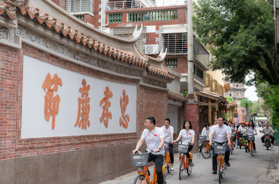 泉州交发集团纪委(监察专员办)干部骑行廉洁文化研学路线,接受廉洁文化熏陶。(张靖隆 摄)