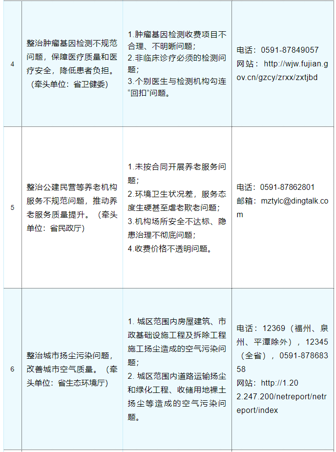 为方便群众参与监督和反映问题,现公布13项“点题整治”项目、整治重点及监督方式: