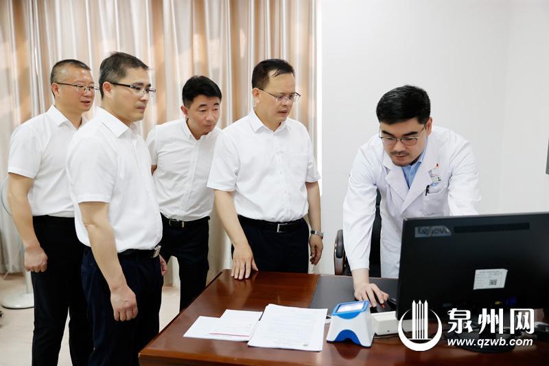 蔡战胜前往泉州市第一医院城东分院,察看“检查检验结果共享互认”、“一号管三天”等操作演示并听取工作情况汇报(陈晓东 摄)