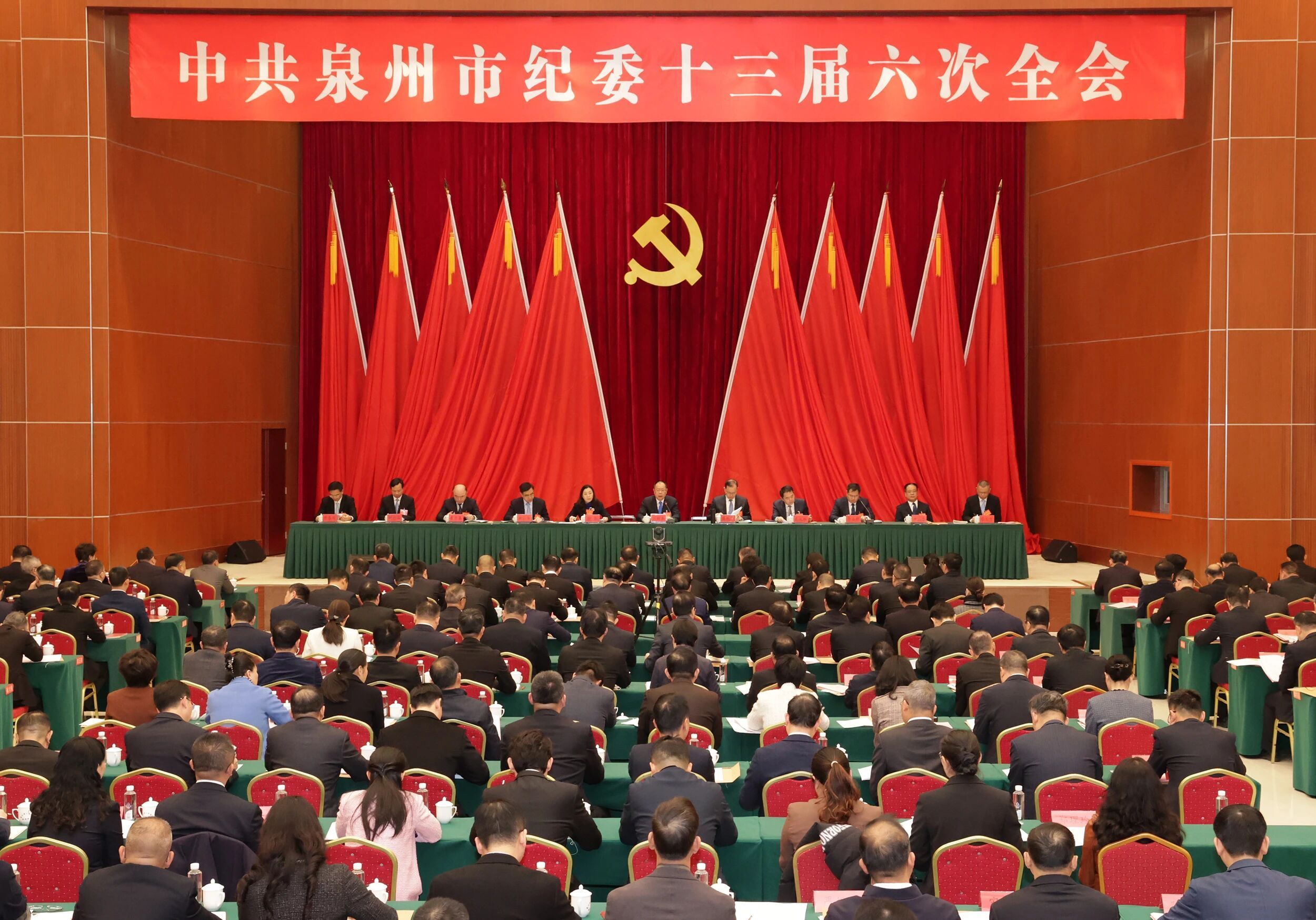 2月4日,中共泉州市第十三届纪律检查委员会第六次全体会议召开。市委书记张毅恭出席并讲话。市委副书记、市长蔡战胜,市人大常委会主任徐华,市政协主席肖汉辉,市委副书记周小华出席。市委常委、市纪委书记、市监委主任李占新主持,并代表市纪委常委会作工作报告。